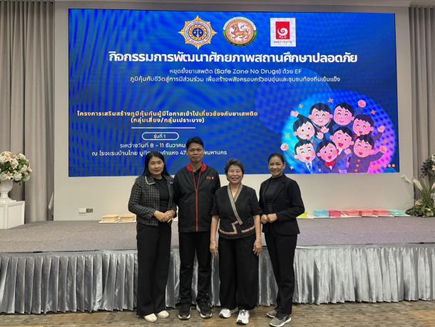 วันที่ 8-11 ธันวาคม 2568 นางพิลาสินี ถาริยะวงศ์วนิช ผู้อำนวยการโรงเรียนจุมปีวนิดาภรณ์ เทศบาลเมืองน่าน (บ้านภูมินทร์) มอบหมายให้ นางวราภรณ์ จิณไชย ครูวิทยฐานะครูชำนาญการพิเศษ หัวหน้าสายชั้นอนุบาล เข้าร่วมอบรมในโครงการเสริมสร้างภูมิคุ้มกันกลุ่มผู้มีโอกาสเข้าไปเกี่ยวข้องกับยาเสพติด (กลุ่มเสี่ยง/กลุ่มเปราะบาง) กิจกรรมการพัฒนาศักยภาพสถานศึกษาปลอดภัย หยุดยั้งยาเสพติด ด้วย EF ภูมิคุ้มกันชีวิตสู่การมีส่วนร่วม เพื่อสร้างพลังครอบครัวและชุมชนท้องถิ่นเข้มแข็ง ณ โรงแรมบ้านไทยบูทีค กรุงเทพมหานคร
