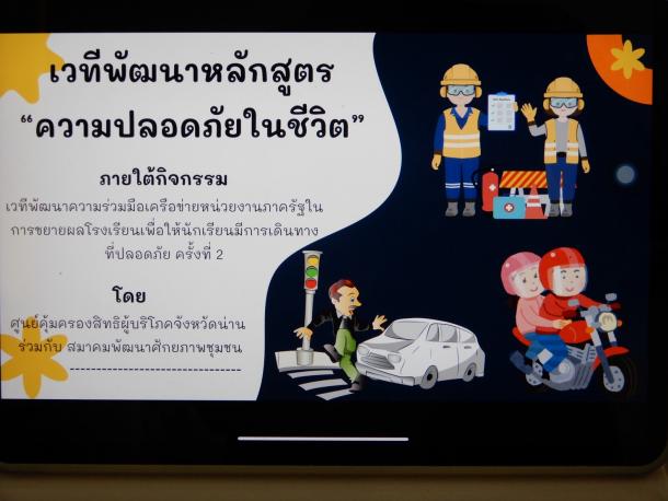 วันที่ 19 ธันวาคม 2568 เวลา 08.30-15.30 น. โรงเรียนจุมปีวนิดาภรณ์ เทศบาลเมืองน่าน (บ้านภูมินทร์) นำโดย นางพิลาสินี ถาริยะวงศ์วนิช ผู้อำนวยการสถานศึกษา มอบหมายให้นายอนุรักษ์ กาญกาวี รองผู้อำนวยการสถานศึกษา และตัวแทนครู ร่วมเวทีพัฒนาหลักสูตรความปลอดภัยในชีวิต ภายใต้กิจกรรมเวทีพัฒนาความร่วมมือเครือข่ายหน่วยงานภาครัฐในการขยายผลโรงเรียนเพื่อให้นักเรียนมีการเดินทางที่ปลอดภัย ครั้งที่ 2 จัดโดยศูนย์คุ้มครองสิทธิผู้บริโภคจังหวัดน่าน ร่วมกับสมาคมพัฒนาศักยภาพชุมชน ณ ห้องประชุมอาคารพญานาค เทศบาลเมืองน่าน