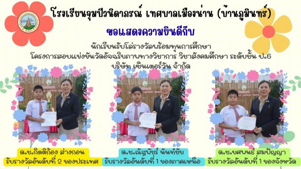 🏅 ด.ญ.กานต์ทิตา มะลิ – อันดับที่ 1 ของจังหวัดน่าน รับเกียรติบัตร