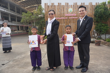 ⏰หลังจากนั้น ผู้บริหารสถานศึกษาได้มอบรางวัลให้แก่นักเรียนระดับชั้นประถมศึกษาปีที่ 1–6 ที่ชนะการประกวดคำขวัญต่อต้านการทุจริต จำนวนทั้งสิ้น 36 คน เพื่อส่งเสริมคุณธรรม จริยธรรม และจิตสำนึกในการต่อต้านการทุจริตในสถานศึกษา