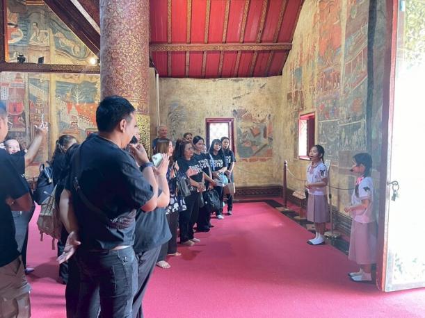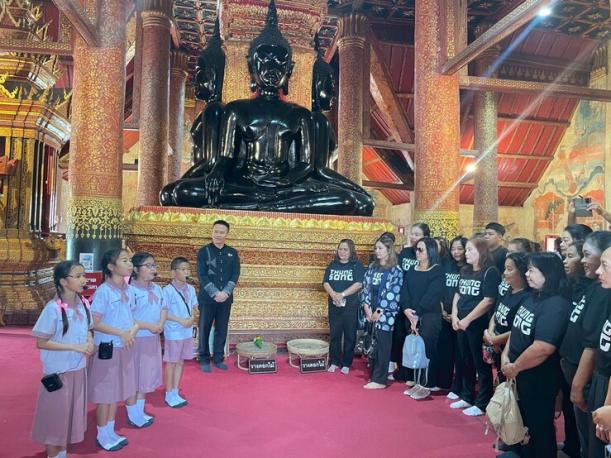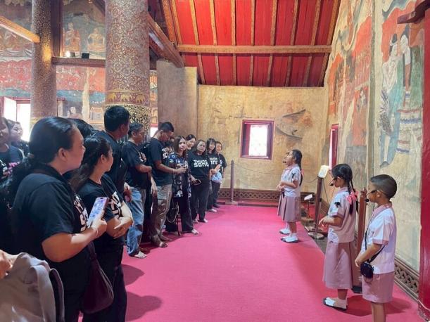 👧🧒 นอกจากนี้ ในช่วงเวลา 10.00–11.00 น. นางพิลาสินี ถาริยะวงศ์วนิช ผู้อำนวยการสถานศึกษา ได้มอบหมายให้ นายอนุรักษ์ กาวี รองผู้อำนวยการสถานศึกษา และ นางสาววรรษมน วงศ์ศิริ ครู นำนักเรียนเจ้าบ้านน้อยโรงเรียนจุมปีวนิดาภรณ์ฯ ทำหน้าที่ต้อนรับและนำเสนอการเรียนรู้แก่คณะผู้บริหารและคณะครูจาก โรงเรียนรีสอร์ทอนุบาล เทศบาลเมืองทุ่งสง จังหวัดนครศรีธรรมราช ณ วัดภูมินทร์ จังหวัดน่าน
